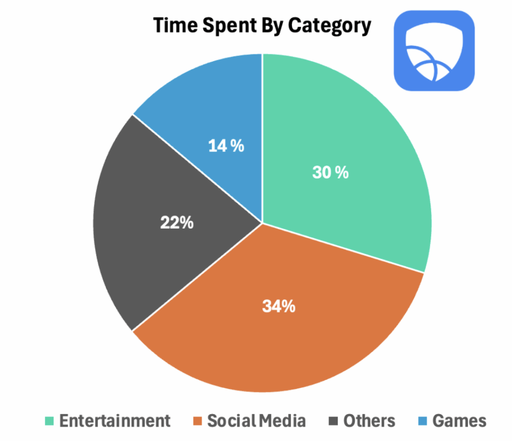 - Games: fell sharply from 30 to 14 hours. This may indicate reduced gaming time as school resumed, or a seasonal shift where kids prioritized social media and entertainment over longer gaming sessions.