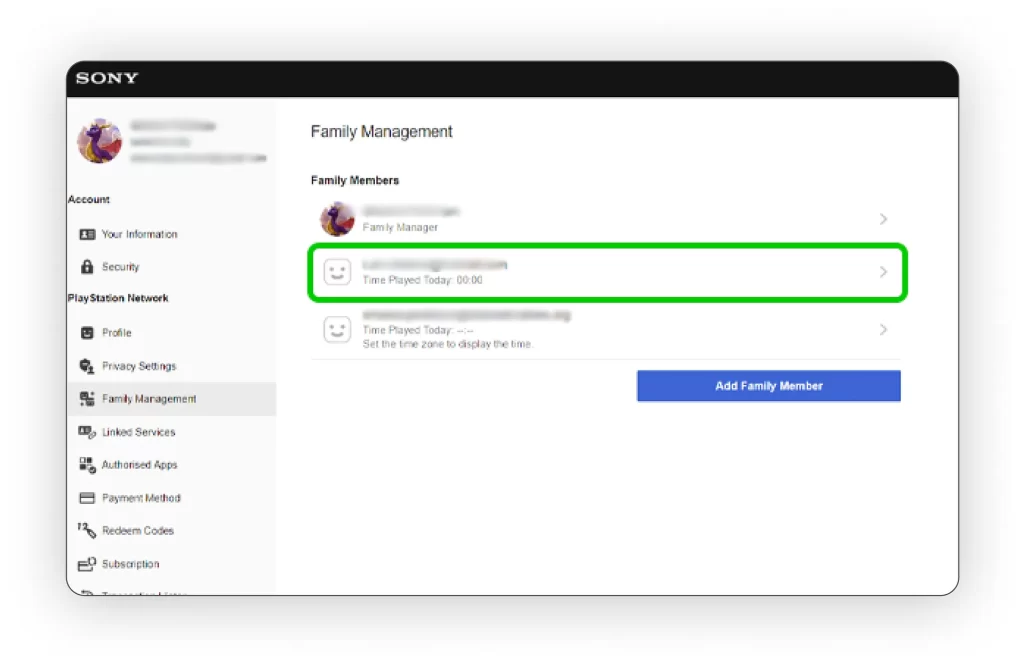 Step 2: Select Manage Family Members and choose your child’s profile.