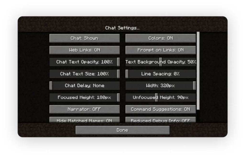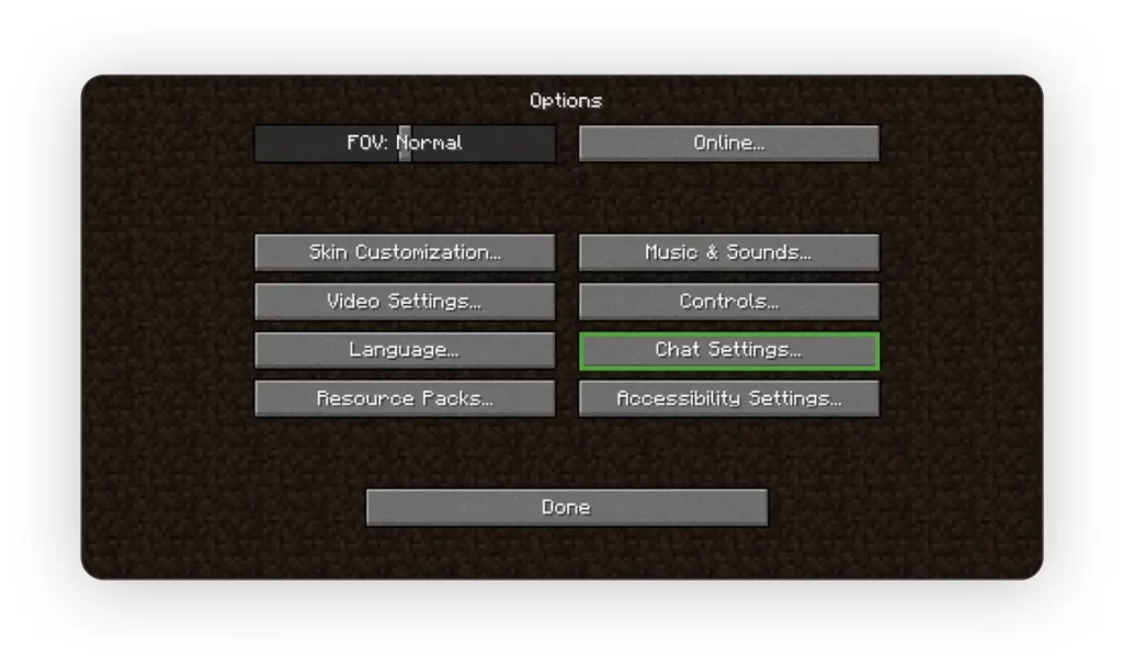 Step 1 – From Minecraft’s main menu, select Options and then Chat Settings
