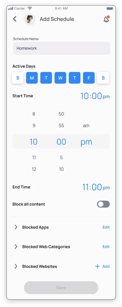 Use Mobicip to block access to mature content and ensure your child only engages with age-appropriate material. You can also set content restrictions to filter out inappropriate language or violence.
