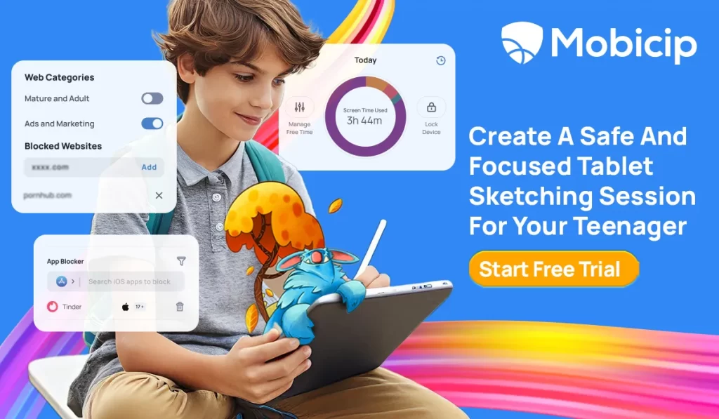 Just as you wouldn’t hand over the sports car keys to a novice driver, choosing the right digital drawing tablet and app for your teenager is crucial. It’s not just about fun; it’s about safety, responsibility, and age-appropriateness. Now, I’m not trying to scare you, but let’s face it – the internet can be a wild and unpredictable place, especially for curious young minds. That’s where Mobicip steps in. Mobicip can be your trusty guide through the digital wilderness, helping your teenager navigate the vast expanse of cyberspace responsibly and safely.